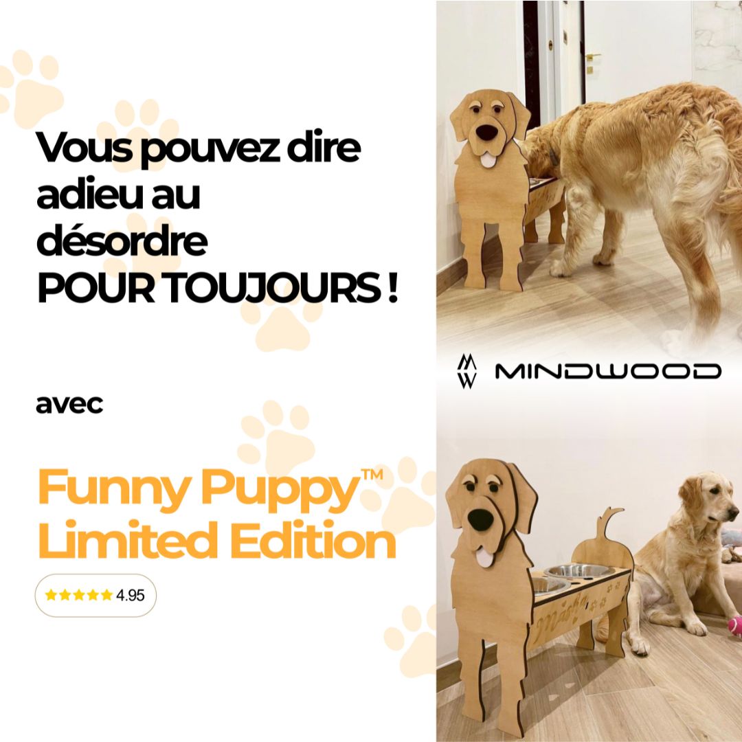 Unique en son genre, le porte-bol Mindwood est entièrement personnalisé pour votre chiot. En plus d'être un élément de design et très utile pour votre compagnon à 4 pattes , il lui permet de manger et de boire confortablement .