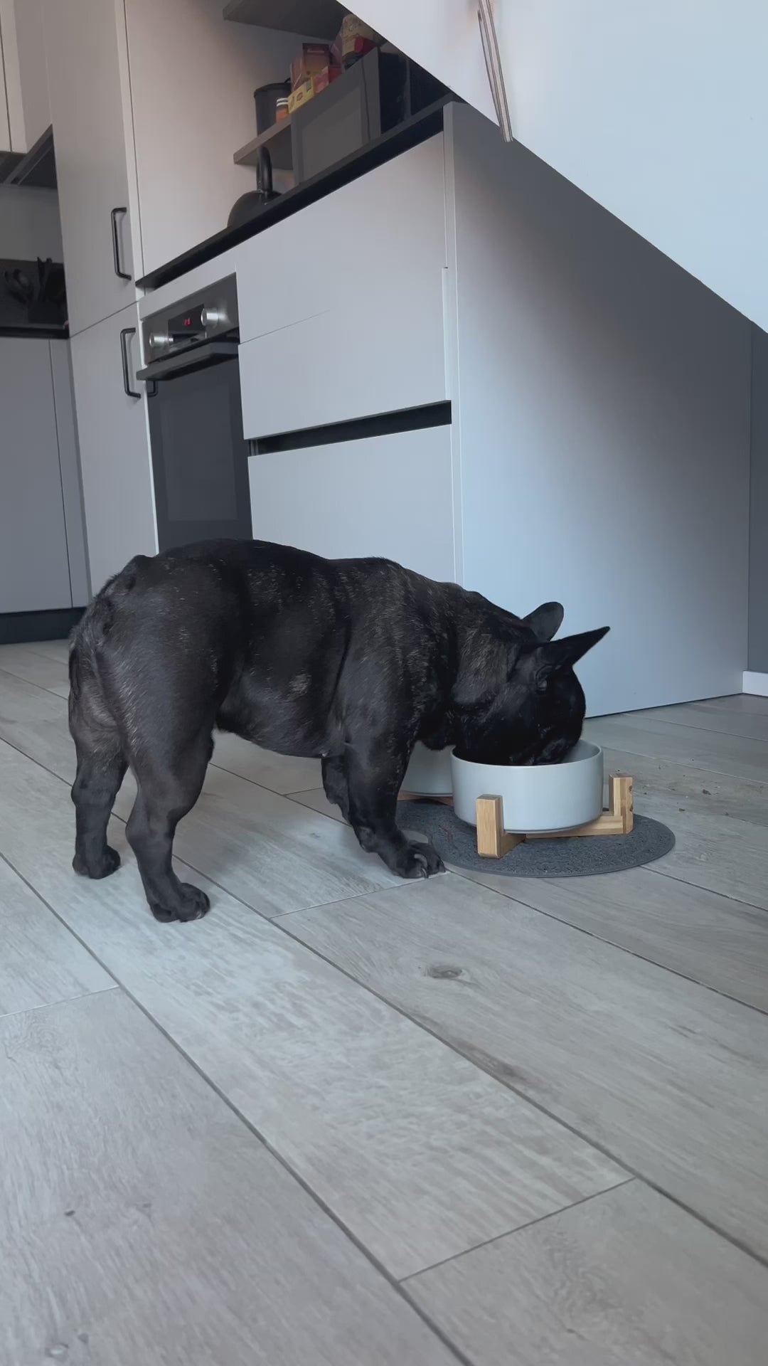 - Confort pour l'animal → La structure surélevée des gamelles permet au chien de manger correctement et réduit les tensions au niveau des pattes et du cou.