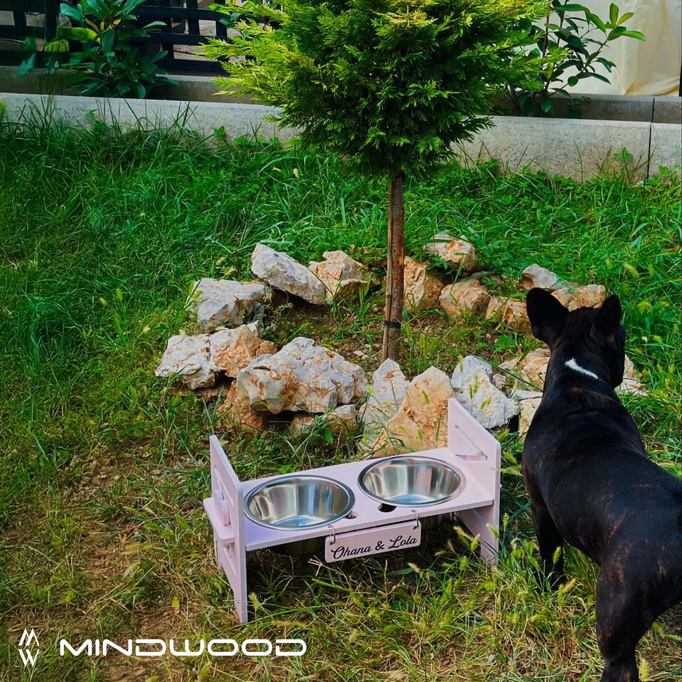 - Comfort per l'animale → La struttura rialzata delle ciotole consente al cane di mangiare correttamente e riduce la tensione su zampe e collo.
